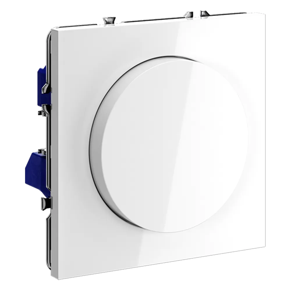 Устройство работает как полноценный выключатель (нажатие включает/выключает свет) и как диммер (поворот регулирует яркость от 5 до 600 Вт). Совместим с светодиодными, галогенными и лампами накаливания, поддерживающими фазовое диммирование, включая современные LED-источники благодаря технологии отсечки по заднему фронту — без мерцания, шума и резких скачков напряжения.